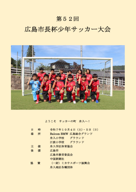 - 広島市長杯少年サッカー大会の開会式は、中止いたします。